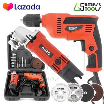 (แพ็คคู่) ENZO เครื่องเจียร์ หินเจียร์ 4 นิ้ว 750W + สว่านไฟฟ้า 3 หุน 500W แถมฟรี!! ดอกสว่าน ใบตัดไม้ เหล็ก ปูน ใบเจียร และอุปกรณ์รวม 21 ชิ้น มีส่วนลด มีส่วนลดราคาประหยัดที่สุด